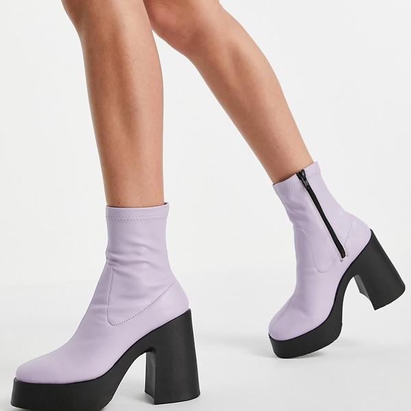 エイソス ASOS asos ASOS DESIGNElsieハイヒールソックスブーツライラック 靴 レディース 女性 インポートブランド 小さいサイズから大きいサイズまで