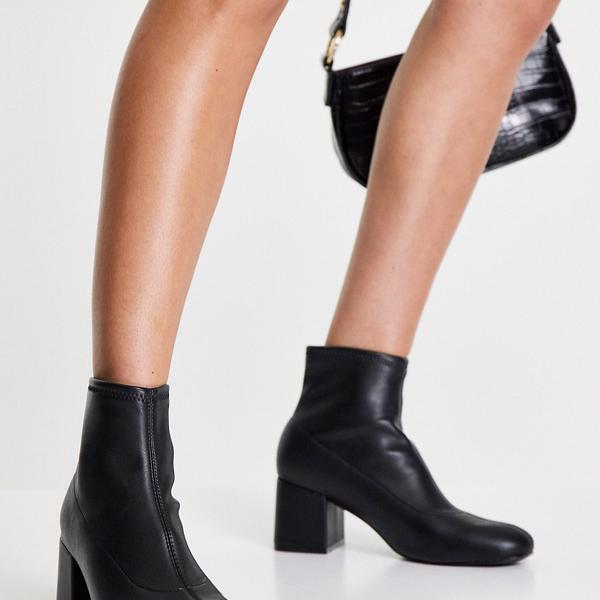 ニュールック New Look ニュールックのフェイクレザーヒールソックスブーツ(ブラック) 靴 レディース 女性 インポートブランド 小さいサイズから大きいサイズまで