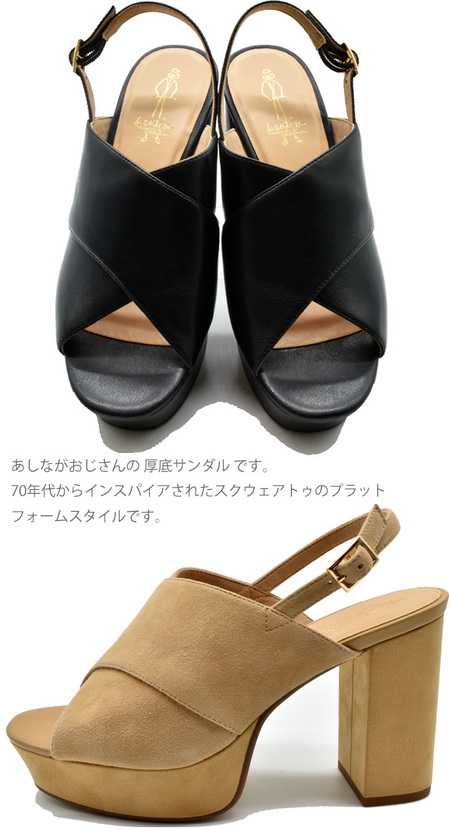 【クーポン対象商品】 あしながおじさん 厚底サンダル ストラップ チャンキーヒール 本革 レザー レディース 全4色 22.5-24.5 6701253 セール